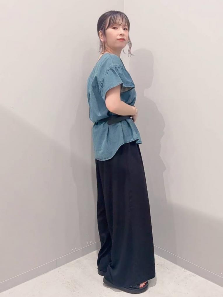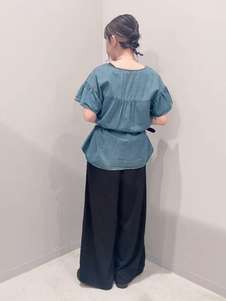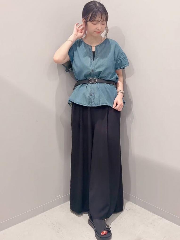 デニム生地のフリルシャツ、ガーリーすぎなくて◎