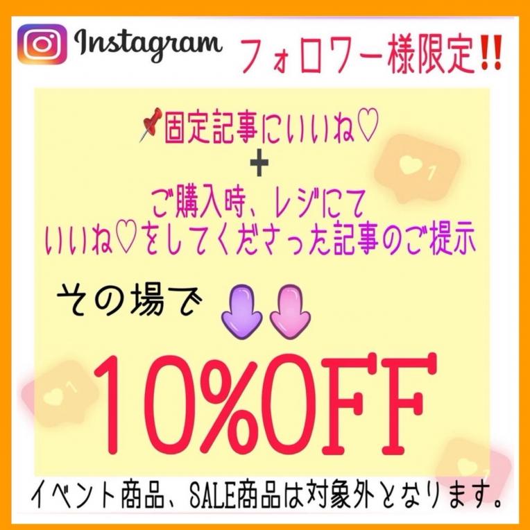 今月もインスタグラムフォロワー様限定10%OFFセールを開催いたします!