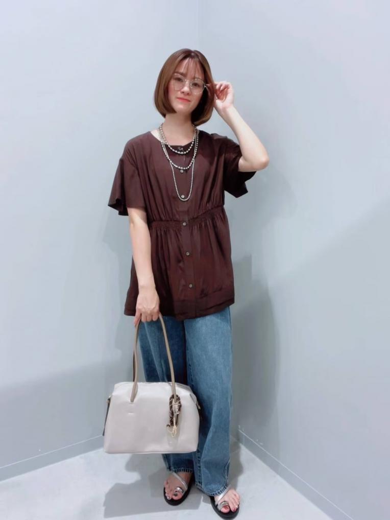 定番デニムにキレイめシャーリングトップスで