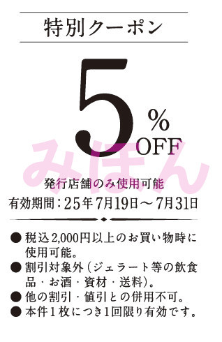 先日ピエリ守山店でお配りした「次回使える!5%OFFクーポン」✨