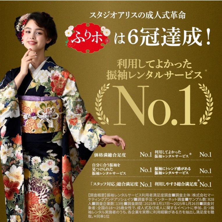 スタジオアリスの成人式革命”ふりホ”では、京友禅競技大会受賞柄振袖をはじめ、華やかな正統派振袖から、かわいい、レトロ・モダン、モード、ディズニーデザイン振袖など約1500着の振袖をいつでもどこでも見られるWEBカタログをご用意!