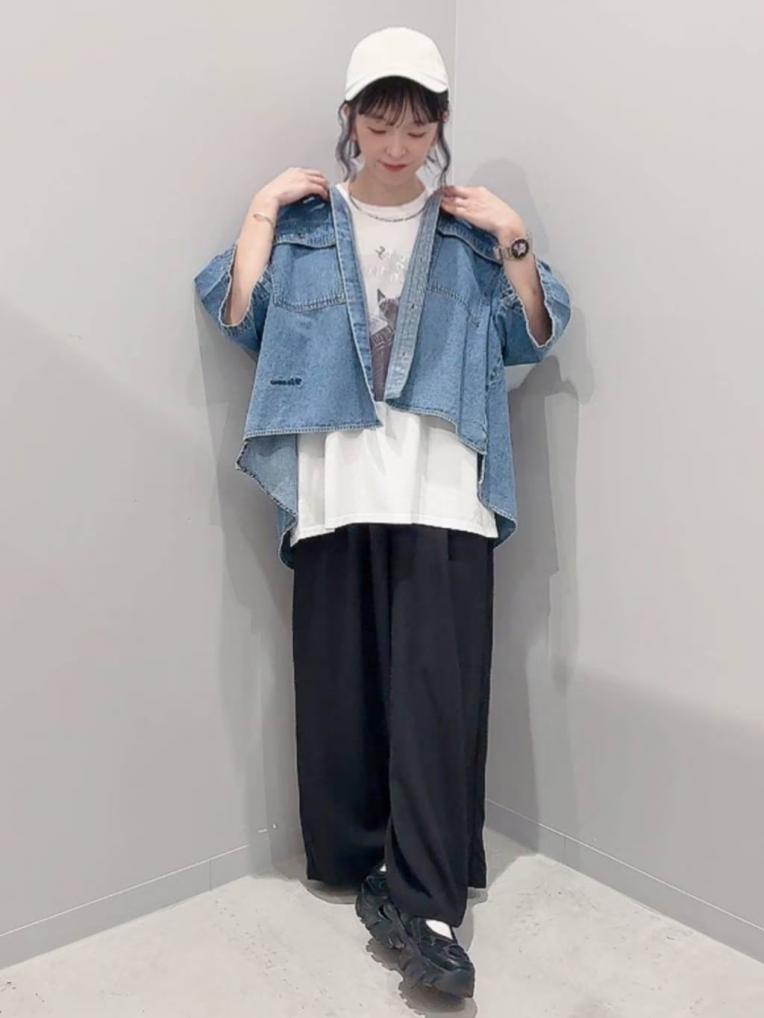 白×黒スタイルにデニムシャツ羽織るだけで柔らかい印象になります⸜( ˶'ᵕ'˶)