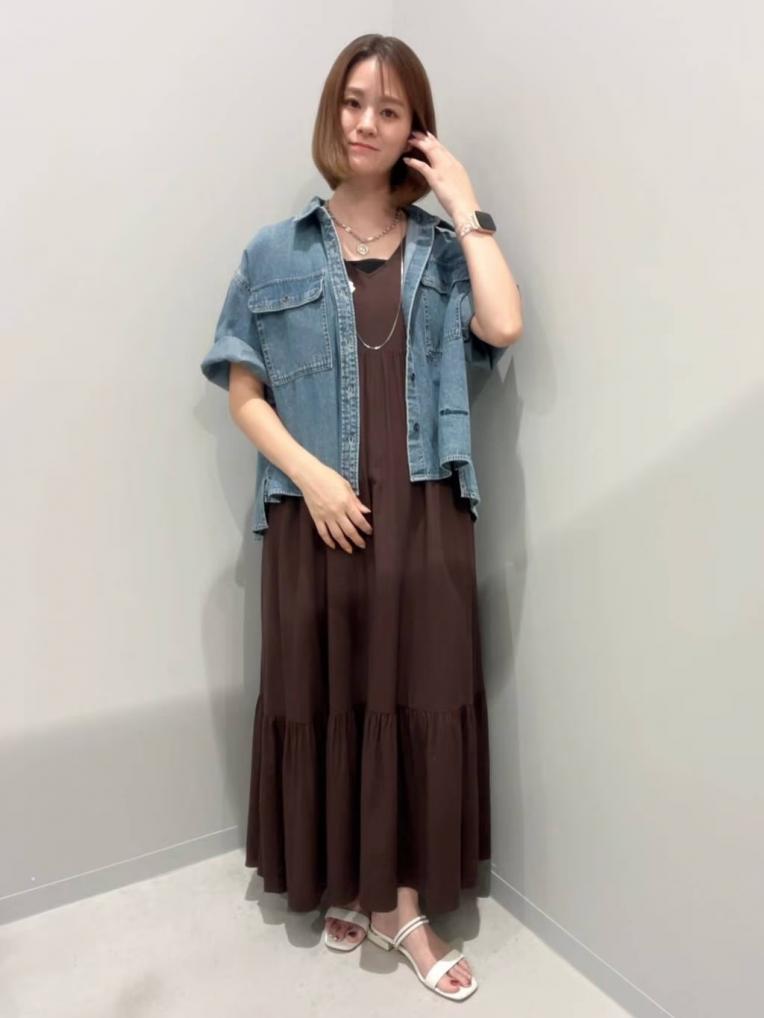 落ち着いた赤みブラウンが上品で、柔らかく揺れるティアードデザインが魅力のワンピース。