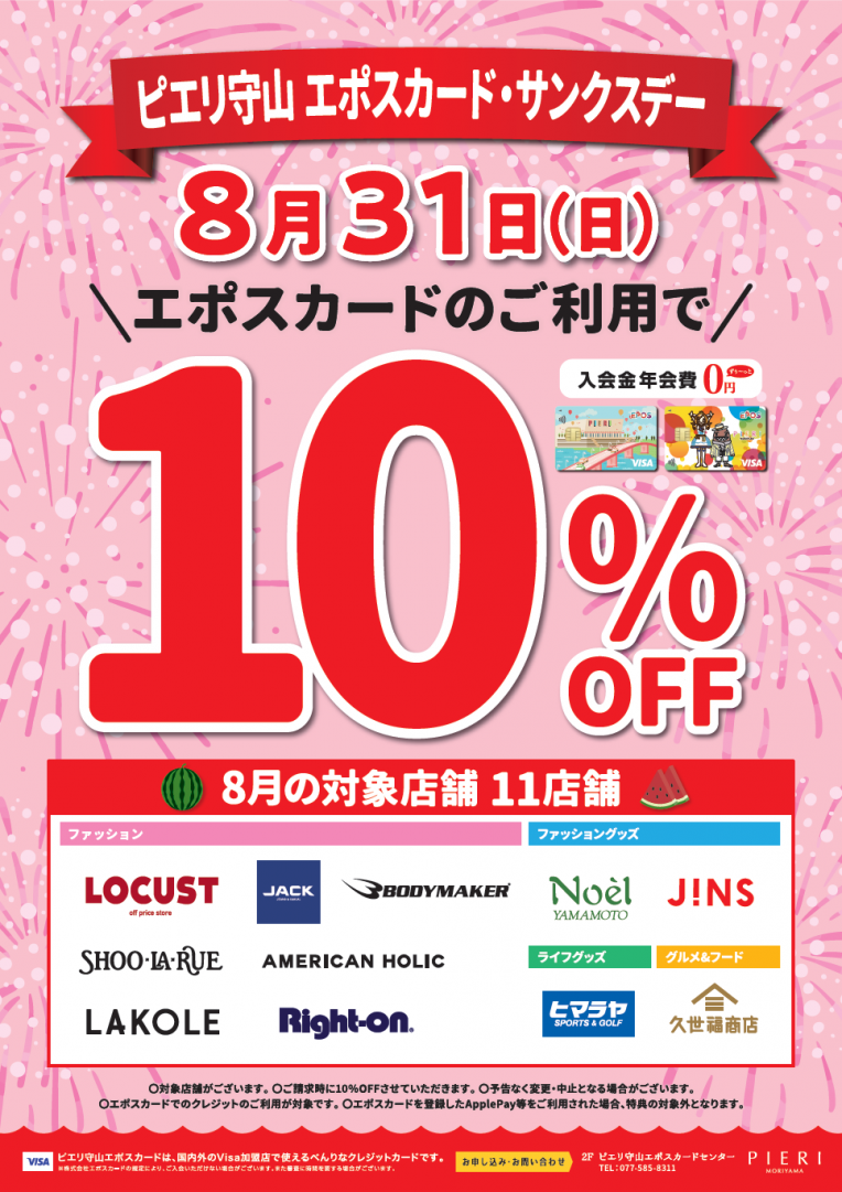 ローカストピエリ守山店は、8月31日(日)限定で、