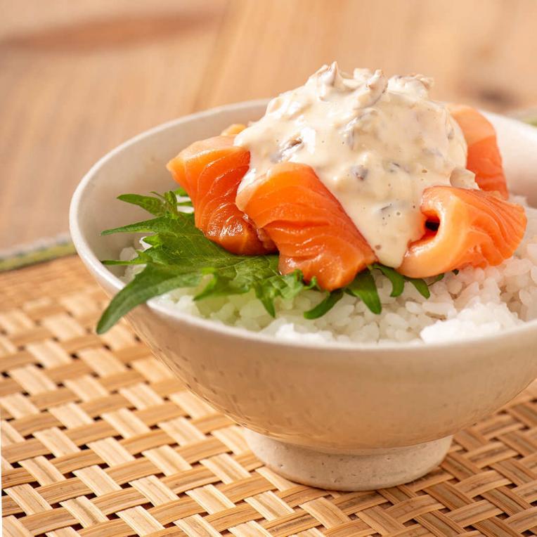いぶりがっこのポリポリ食感と、まろやかなマヨソースの旨味がサーモンの脂と絶妙にマッチ✨