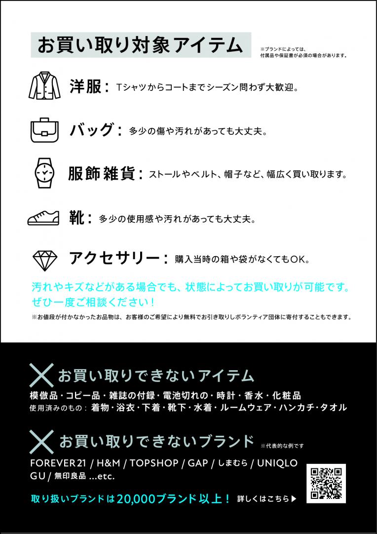 衣類以外の服飾雑貨もお買い取りさせていただきます。