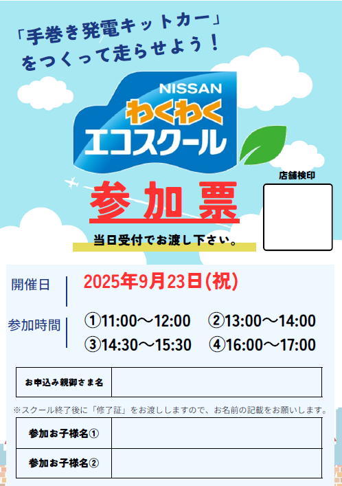 9/23(火曜祝日) 滋賀日産ピエリ守山でお子様体験イベントを開催します!