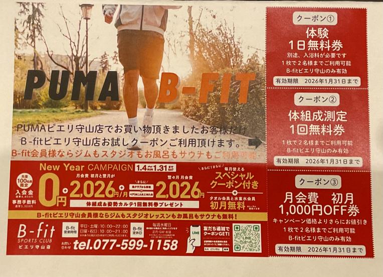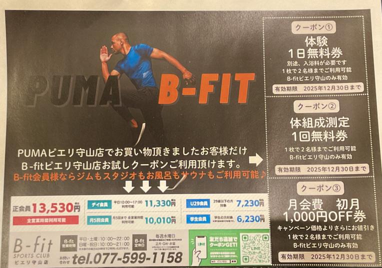 【B -f i t】でお使い頂けるお得なクーポンをお配りしております♪