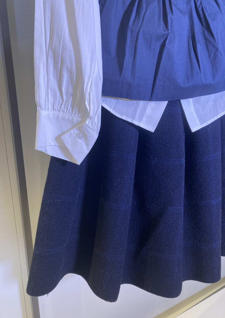 スカートのさりげないチェックが秋らしさを演出します⤴