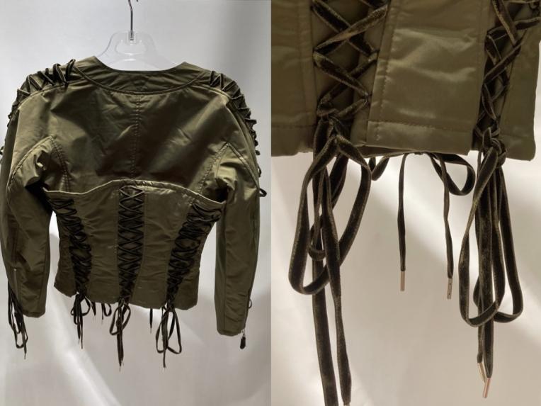 サイドのベロア素材のレースアップデティールが、クールな中に華やかな印象を与えます⚘✿❀