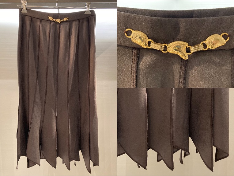 動くたびに揺れるプリーツが美しく、シンプルながら存在感のある一枚です。