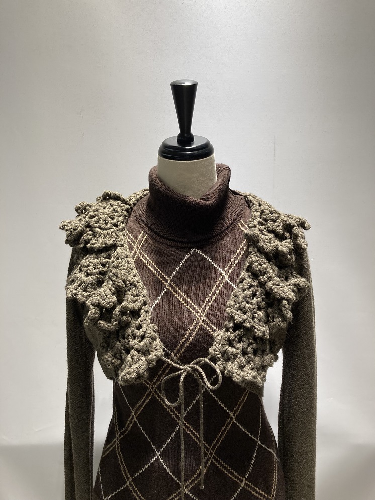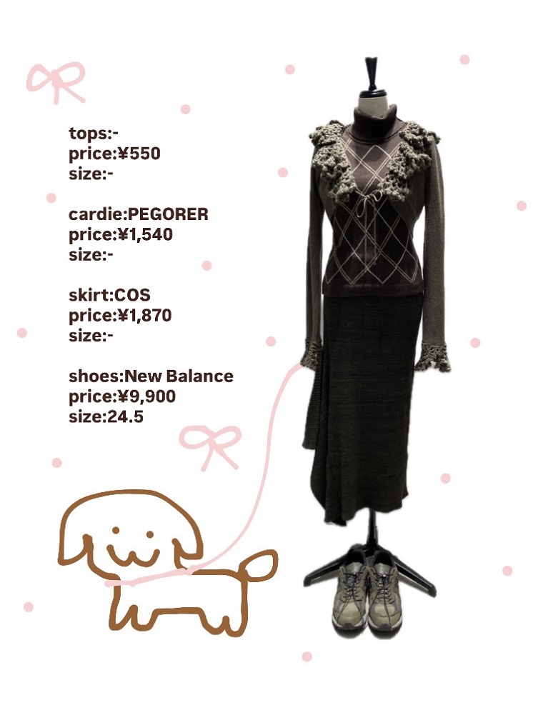 タートルネックのニットトップスはアーガイル柄がチョコレートみたいでかわいいです☆彡