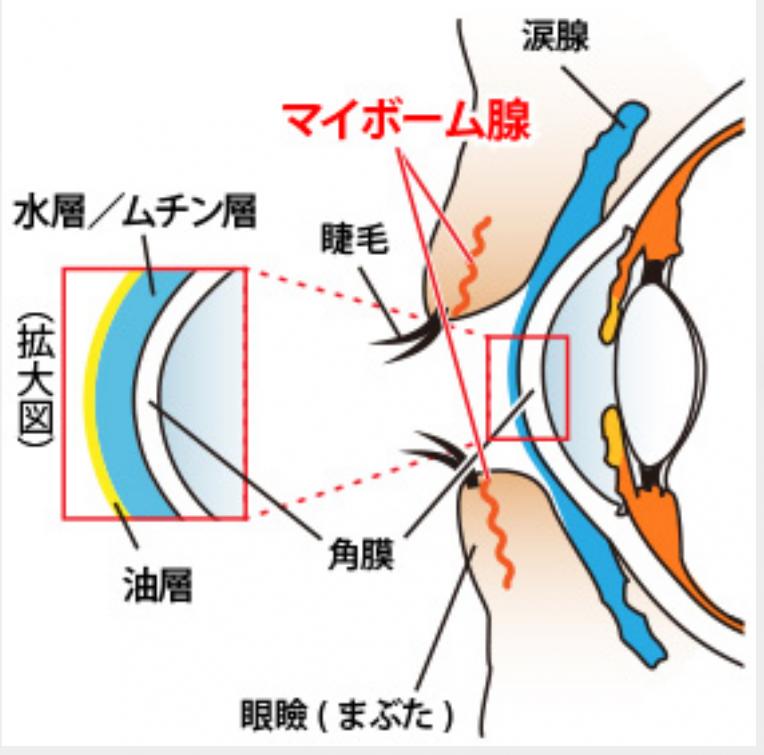ここからでる「マイバム」という油が、涙の蒸発を防ぐ大切なバリアなんです!