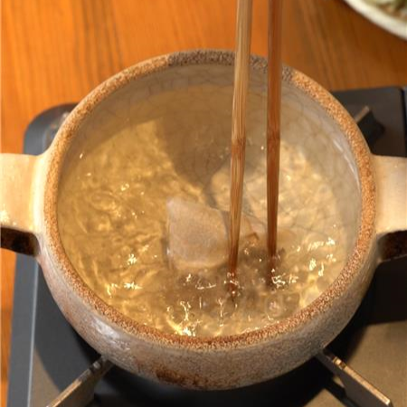 2.沸騰したら中火で3~5分間煮出し、だしパックを取り出してください。