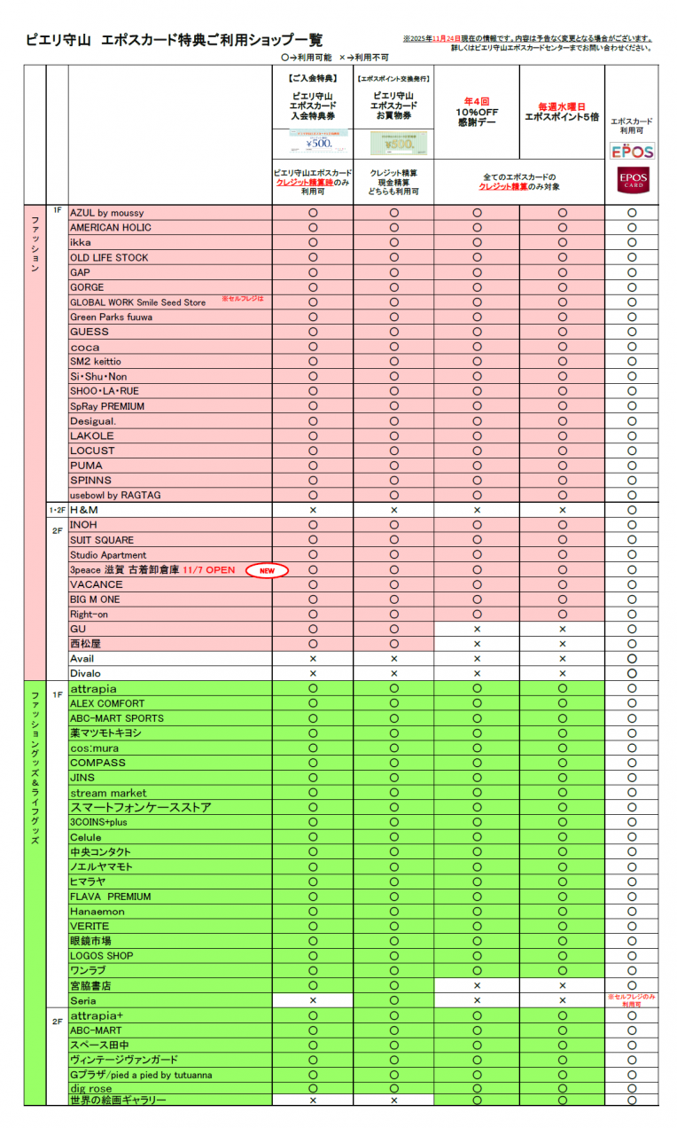 ご不明点はピエリ守山エポスカードスタッフまでお願い致します。