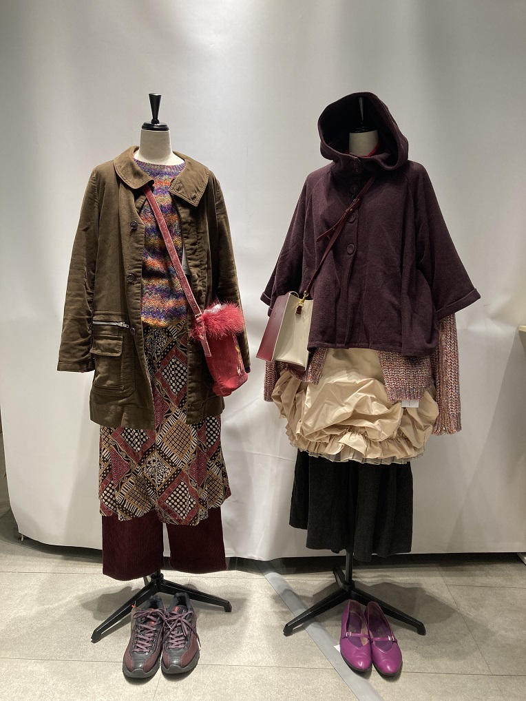 ニットとスカートに柄を持ってきているのでトーンの似ているジャケットを羽織って柄同士でも着やすく★