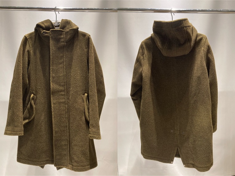 シンプルなデザインで、ほどよく厚みのある生地のフード付きコート★