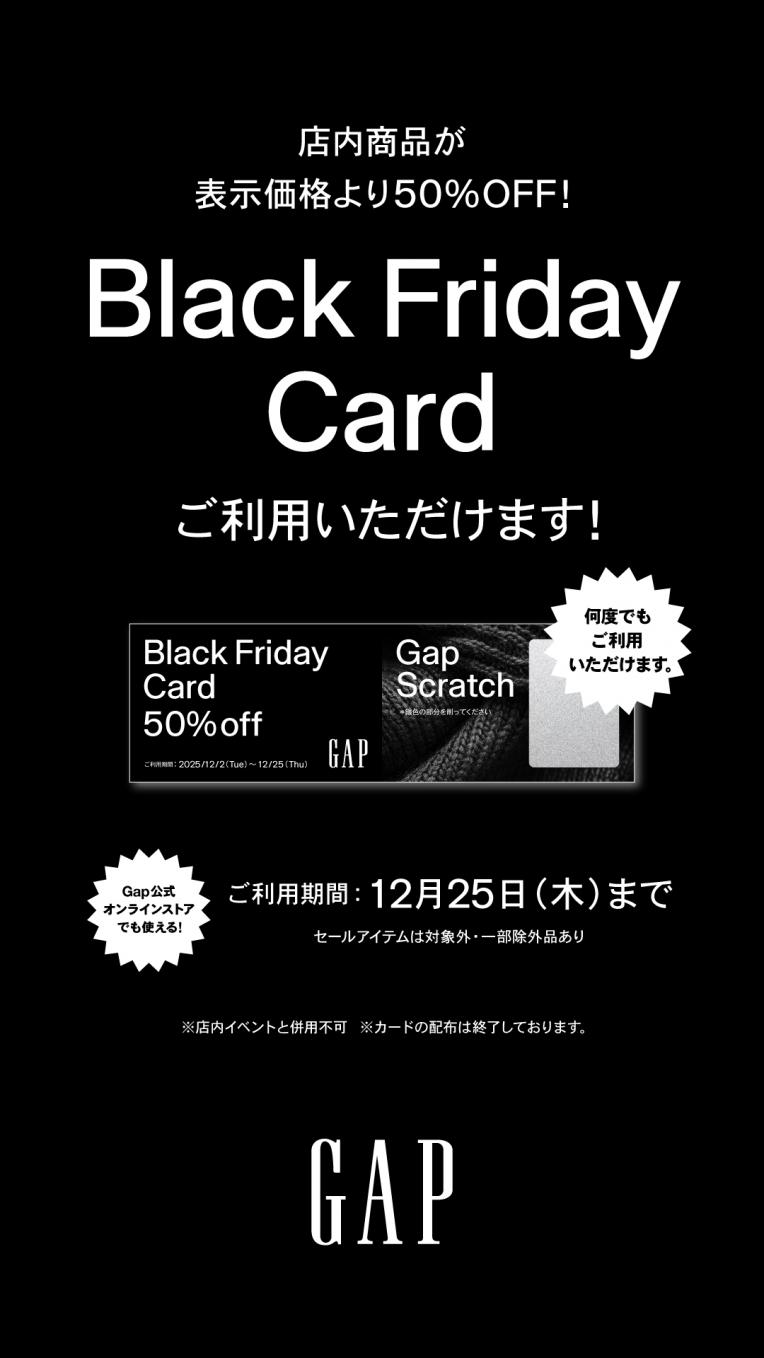 【Gap】店内最大40%OFF BFCardで50%OFF!!