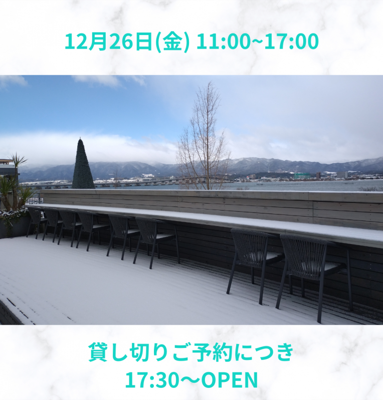 12月26日金曜日は貸切ご予約につきオープン時間がディナータイムの17時半からとさせていただきます。