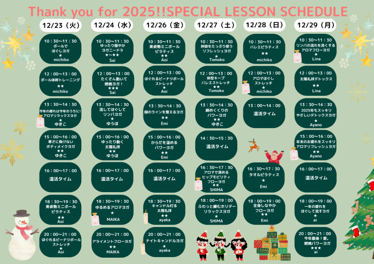 年末の特別スケジュールができました!