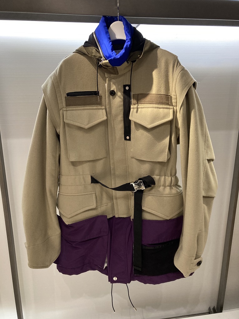 ミリタリージャケットをベースにしながら、随所にサカイ独自の再構築アプローチが落とし込まれた存在感のある一着です♪