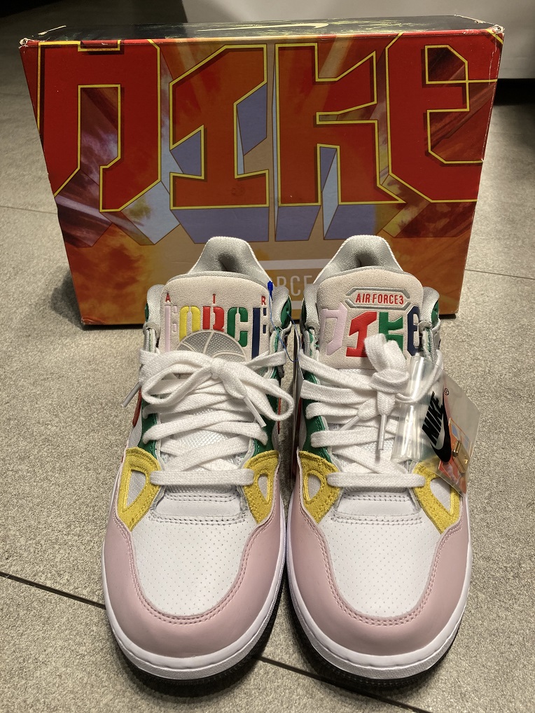 ホワイトレザーを基調に、ピンク、イエロー、グリーン、ブルー、レッドなど多彩なカラーをバランスよく配置し、ポップさとストリート感を両立しています!!