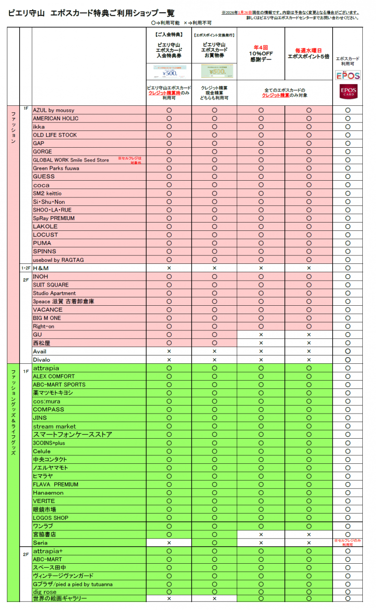 ご不明点はピエリ守山エポスカードスタッフまでお願い致します。