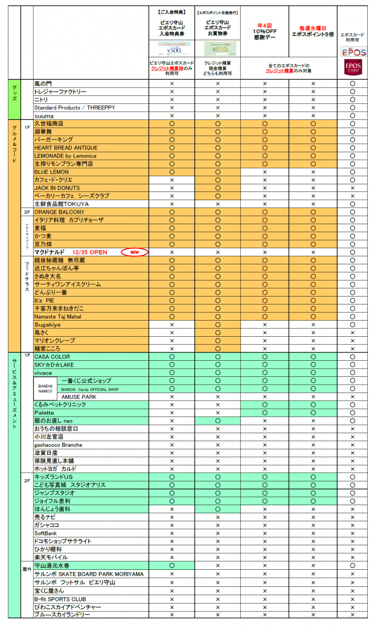 ①『ピエリ守山入会特典ご利用対象テナント一覧』