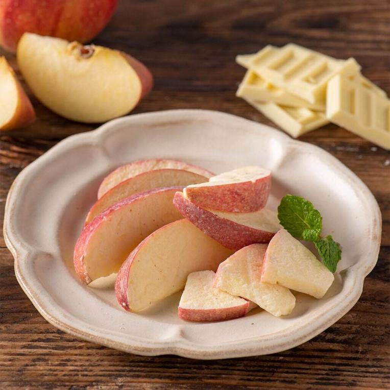 フリーズドライの青森県産りんごに、ホワイトチョコレートを中まで染みこませた、