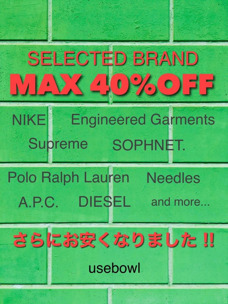 守山店では今週より冬の最終セールとして、SELECTED BRANDを最大40%OFFで販売いたします!