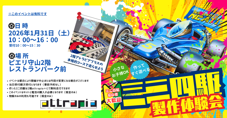※作ったミニ四駆は2階attrapia+にて無料走行できます