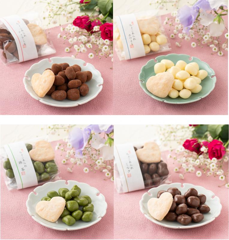 伝統製法「丸粒蒸し」で炊いた餅を職人の火加減で焼き上げた香ばしい素焼きあられに、チョコをまとわせました。