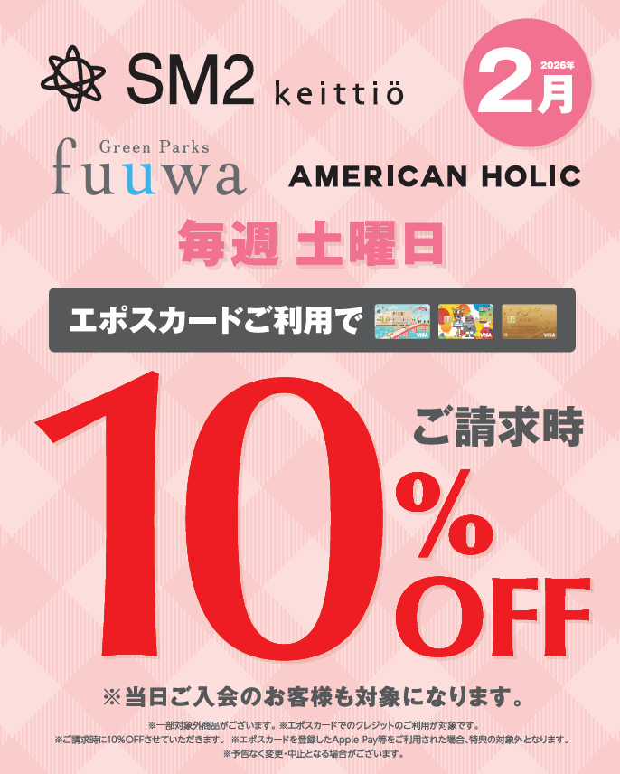 【2月毎週土曜日限定!】エポスカードご利用で請求時10%OFF!!