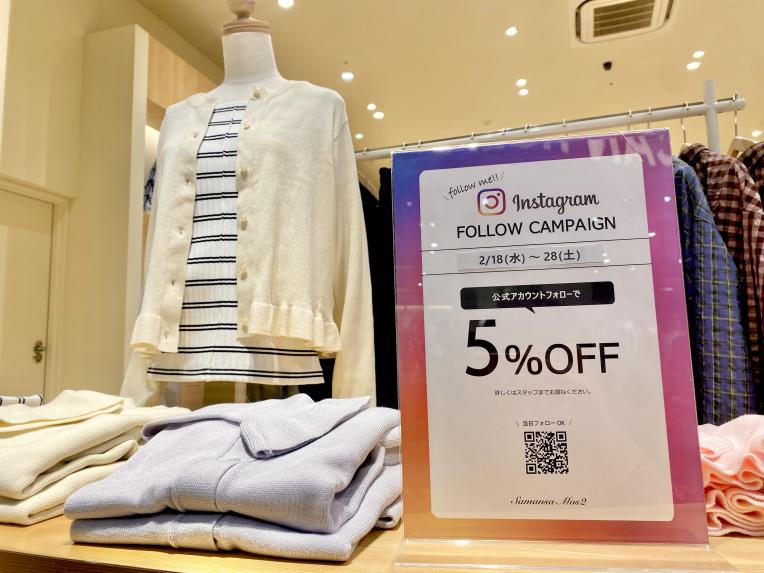 2/18~2/28からSamansaMos2の公式インスタのフォロー画面をレジにて提示していただくと、『更に5%OFF』になるイベントを開催‼️