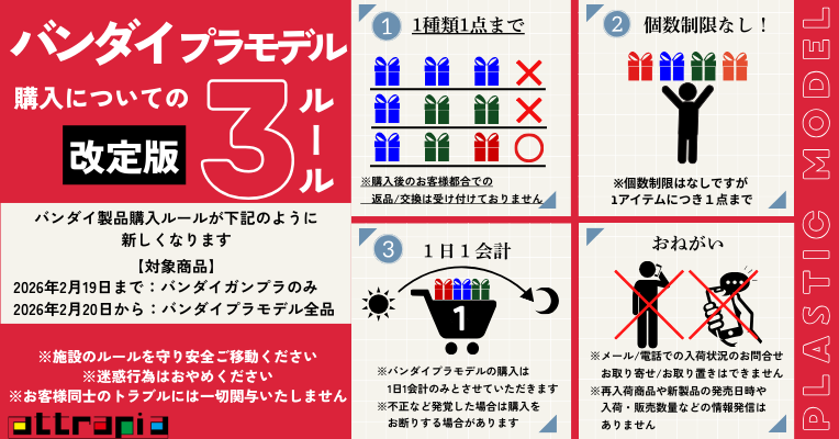 attrapiaは2026年2月20日(金)よりバンダイプラモデルの購入について下記のとおり