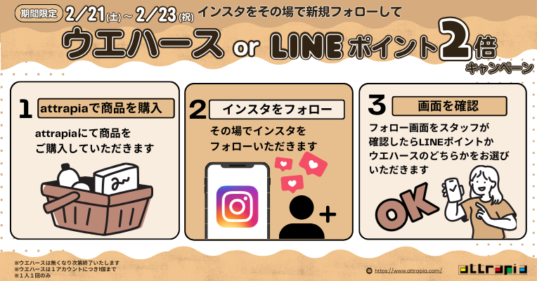 新規フォローしていただくとウエハースorLINEポイント2倍!