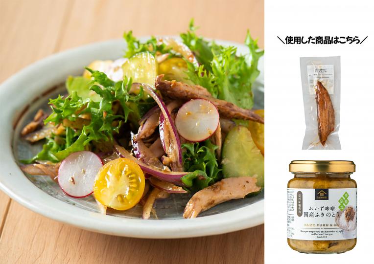ふきのとうのほろ苦い香りが、やわらかなサラダかつおを包み込みます。