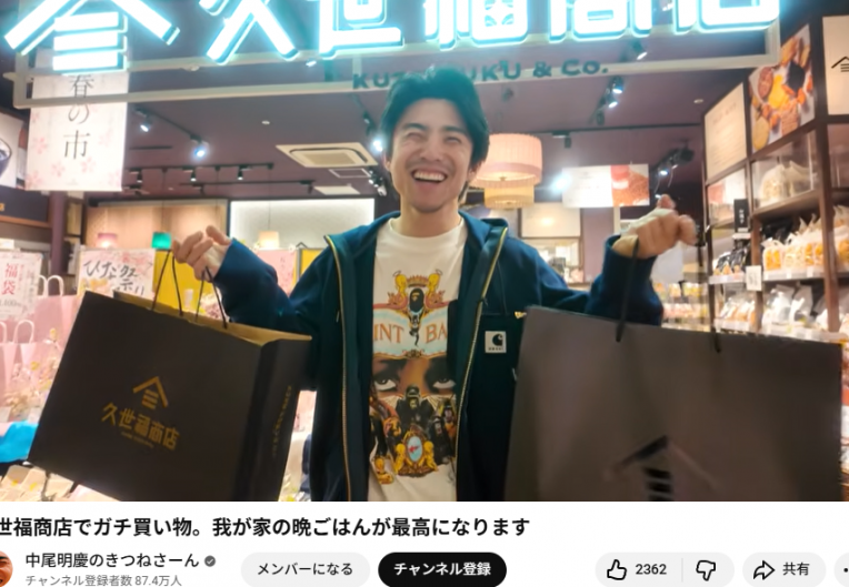 YouTube「中尾明慶のきつねさーん」で久世福商店でのお買い物を撮影いただきました。