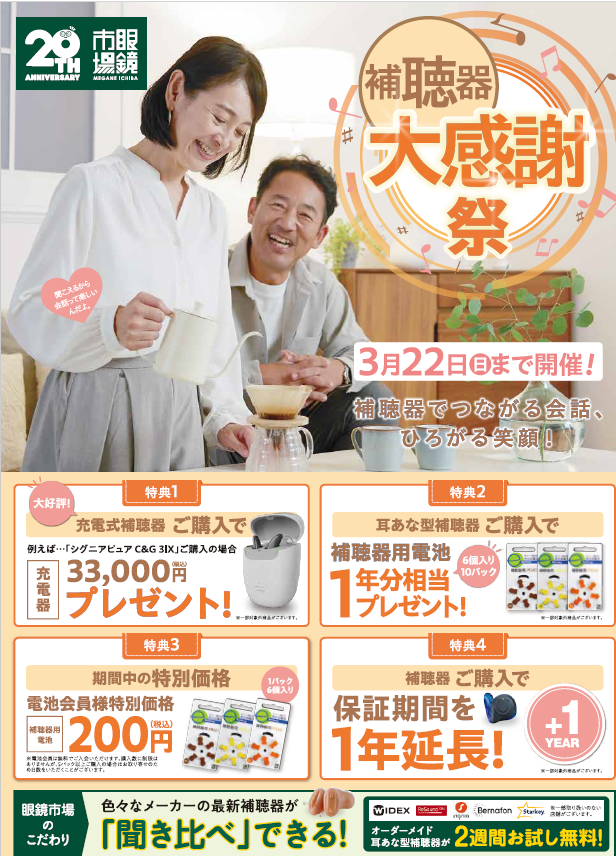補聴器感謝祭開催中! 3/22(日)まで★