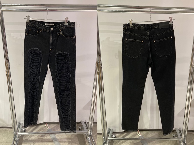 大胆なクラッシュ加工が目を惹くブラックデニム!