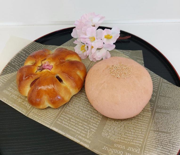 毎年好評を頂いております季節限定、桜餡パンと桜餅パンを