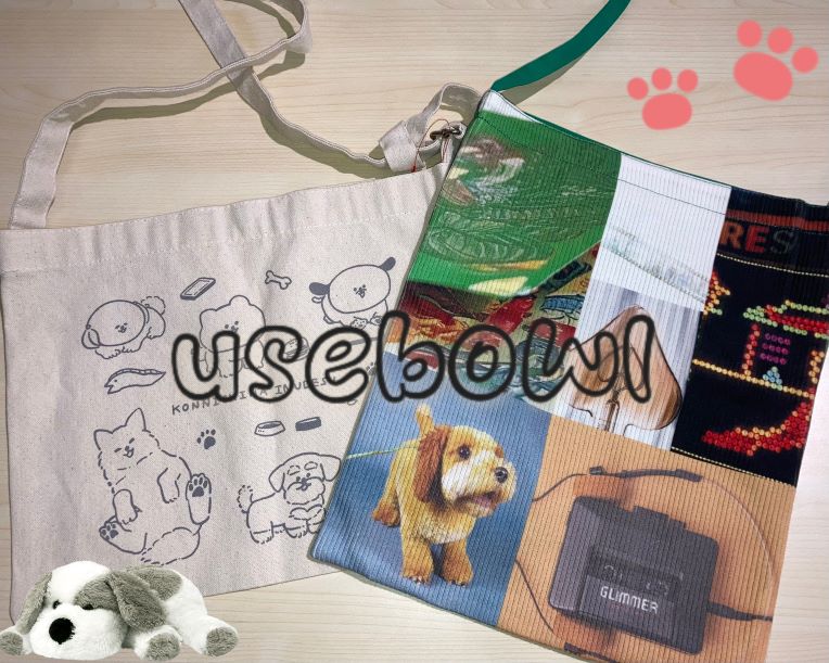 シンプルながらゆるいタッチの犬イラストが可愛らしいデザインバッグです(^^)