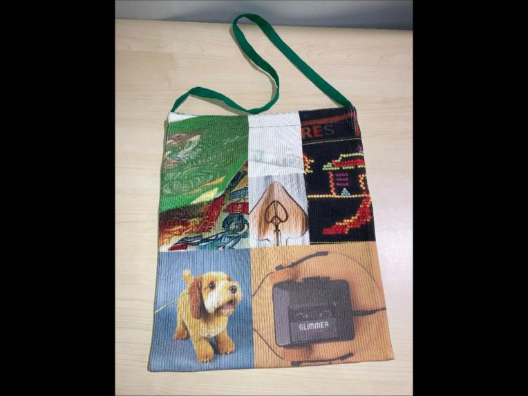 パッチワークのようなグラフィックデザインが目を惹くショルダーバッグ☆