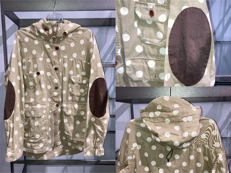 ナチュラルなベージュカラーにドット柄が目をひく存在感のある一着です!