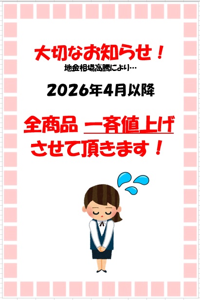 ◆◆◆ 大決算セール&価格改定のご案内 ◆◆◆