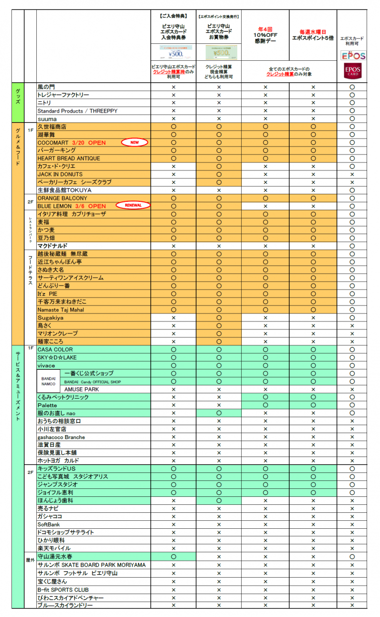 ①『ピエリ守山入会特典ご利用対象テナント一覧』