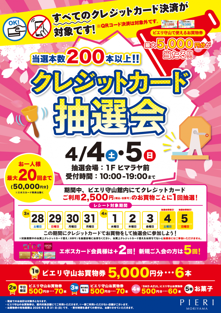 4月4日(土)・5日(日)!!クレジットカード抽選会開催!!!