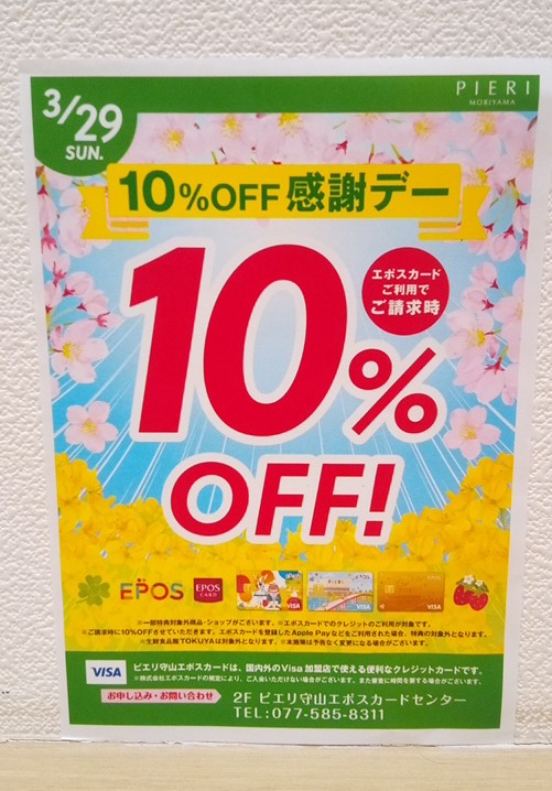 3/29(日)はエポスカード10%OFF