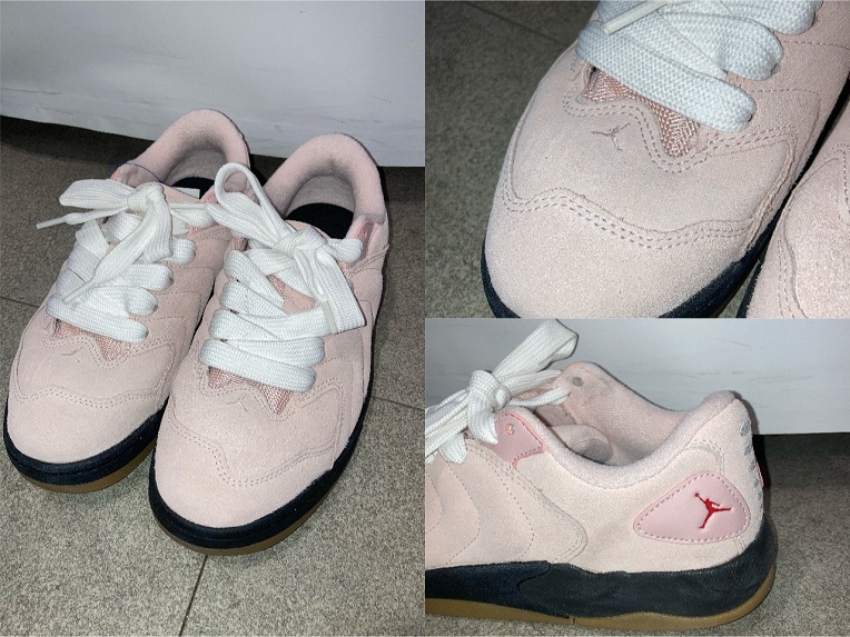 ピンクのスエード素材に赤いジャンプマンのロゴがさりげなく入っていて色合いが可愛く、シンプルながらストリート感もあるアイテムです★