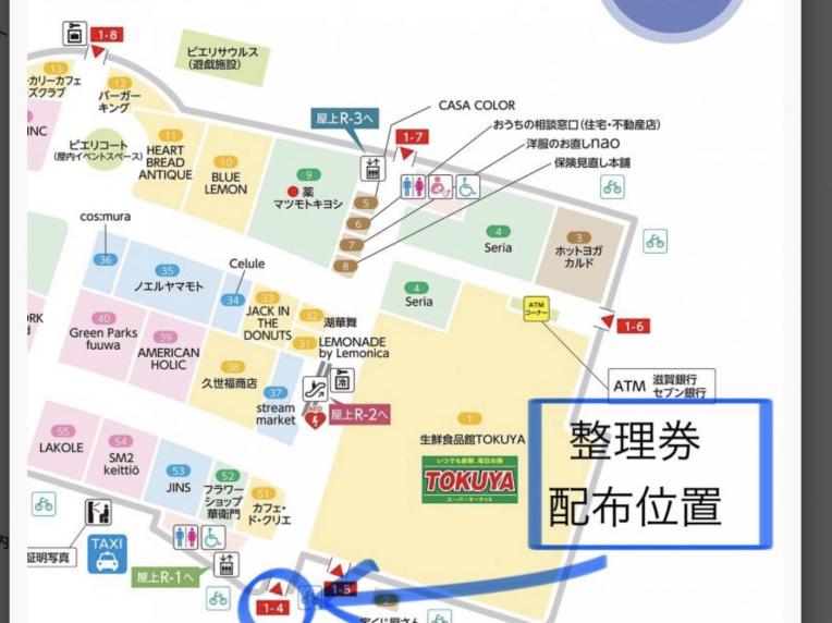 ※整理券配布場所の1F 「1-4」入口前におきましては、雨をしのぐ